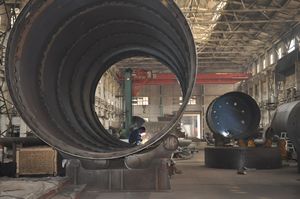 “当当当”一阵阵响亮的榔头声正招呼着这个火热的夏日。原来,这是冷作工师傅们正在实验现场接筒。他们是车间里的生力军,就像在足球场上的先锋一样,需要冲锋在前、攻城拔寨。接筒对冷作工来说是司空见惯,他们有时将筒体高高的叠起来连挂,有时又把筒体放倒在滚轮架上长龙卧虎般地“镶嵌”,他们手中的铁锤就犹如那射雕的弯弓,确定了目的险些就没有做不到的。他们这一身铁打的功夫也是从汗水中磨砺出的,他们手上的每一个老茧都可以说是给他们的一个勋章。